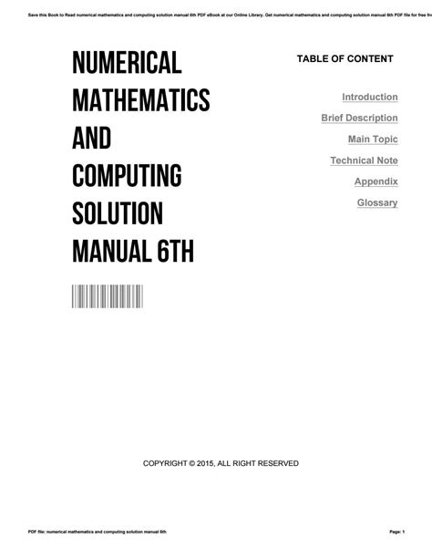 Download online NUMERICAL MATHEMATICS AND COMPUTING SOLUTION MANUAL 6TH Library Binding